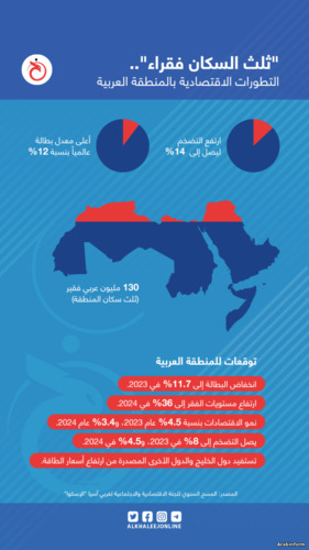 В конце 2022 года Экономическая и социальная комиссия ООН для Западной Азии признала высокий уровень бедности населения арабских стран по сравнению с предыдущими годами, пишет газета Alkhaleej Online. Количество населения арабского региона проживающих за чертой бедности достигло почти 130 млн человек, что составляет треть населения региона, за исключением стран Совета сотрудничества стран Персидского залива и Ливии. При этом, по прогнозам комиссии к 2024 году этот показатель может составить 36 %. @Arabinform |
