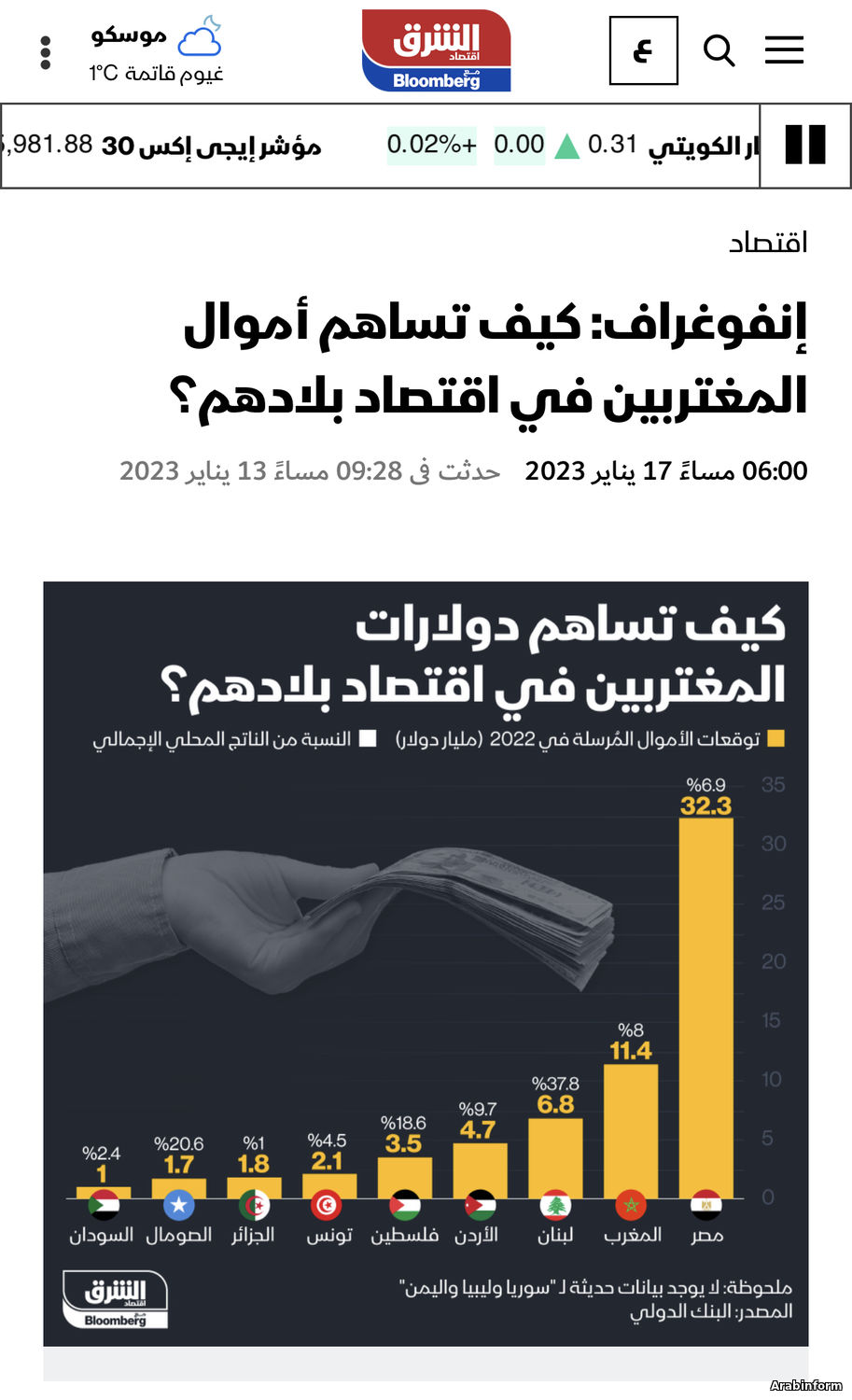 Инфографика: Доля денежных переводов экспатриантов арабских стран