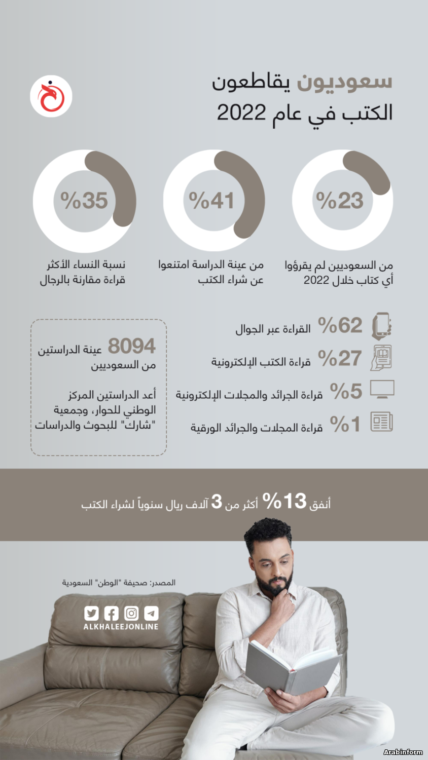 Инфографика: почти четверть саудевцев за год не прочла ни одной книги
