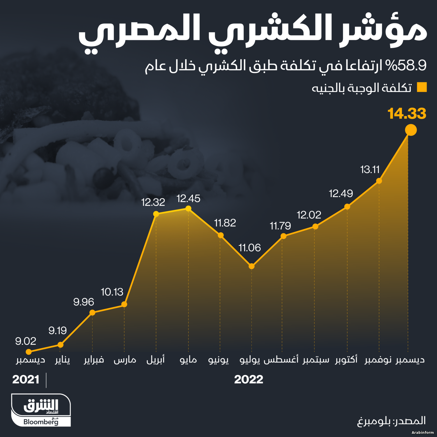 Новый индекс Bloomberg Koshary показывает, что средние цены на ингредиенты блюда Кошари выросли на 58,9 % в годовом исчислении, что почти в три раза превышает уровень инфляции в Египте, составляющий 21,3 %, пишет Asharq News. Стоимость знаменитой египетской трапезы Кошари (прим. - национальное блюдо, которое готовится из риса, макарон и чечевицы) достигала 14,33 египетских фунта. @arabinform |