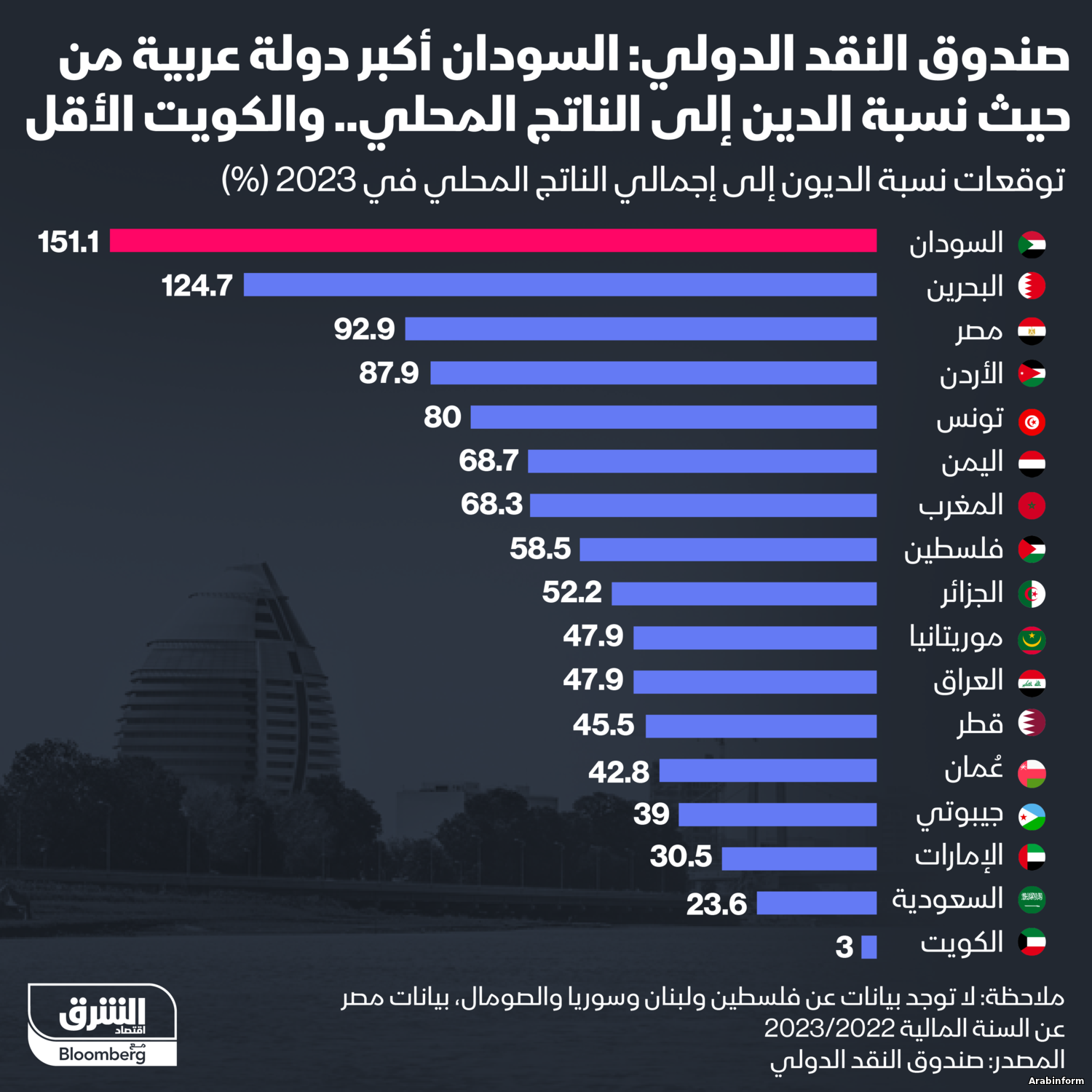 Согласно данным МВФ соотношение долга Судана и Бахрейна к их ВВП составляет более 151 и 124 процента соответственно, пишет Asharq News. Данный показатель у Кувейта и вовсе составляет 3 процента. @Arabinform